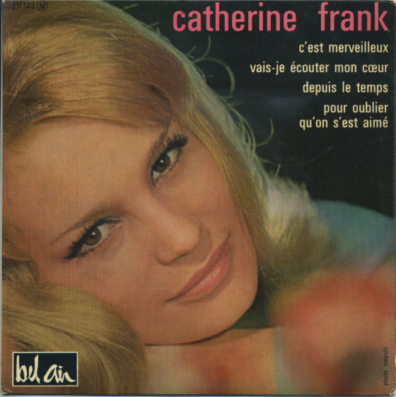 Claudine Coppin, Evy, Ria Bartok, Sophie, Agnès Loti, Catherine Frank… En 1963-64, les producteurs à la recherche de la nouvelle Sylvie lançaient des blondes en espérant qu’elles ne retombent pas trop vite. Catherine Frank allait avoir dix-neuf ans. Elle avait une voix bien perchée et la tessiture qu’il fallait pour des chansons pas si faciles à négocier. Elle a tenu trois 45-tours. Sur le premier, on trouvait trois adaptations d’airs d’outre-Atlantique et, au bout de la deuxième face, Pour oublier qu’on s’est aimé, un titre original signé d’un autre débutant de la maison Bel-Air : Nino Ferrer.